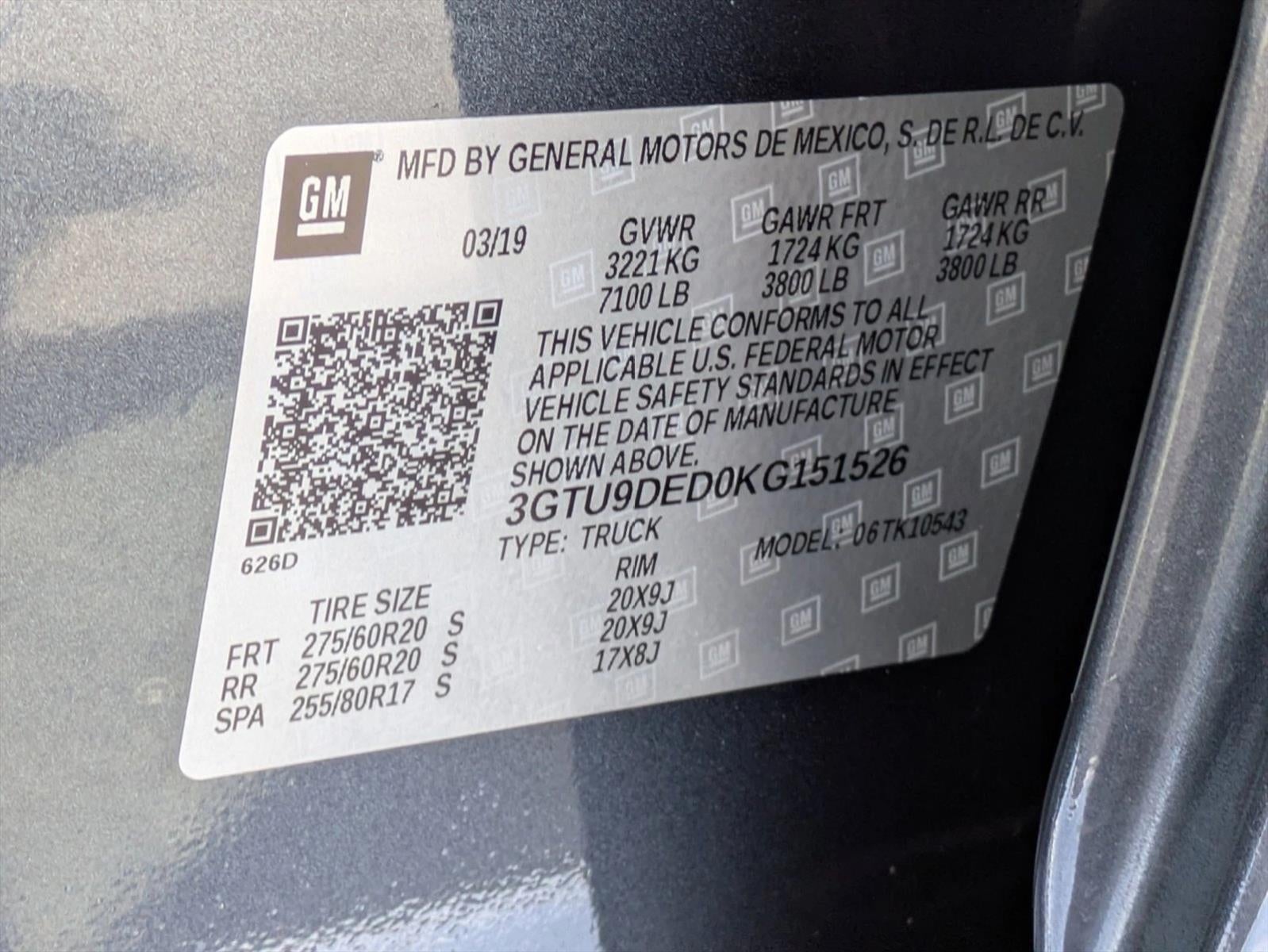 2019GMCSierra 1500 This GMC includes: SLT PREFERRED PACKAGE Navigation System Premium Sound System SLT PREMIUM PLUS PACKAGE Aluminum Wheels Bed Liner Running Boards/Side Steps FRONT AND REAR PARK ASSIST, ULTRASONIC Rear Parking Aid DARK WALNUT/SLATE, PERFORATED LEATHER-APPOINTED SEAT TRIM Leather Seats USB PORTS, 2 (FIRST ROW) LOCATED ON INSTRUMENT PANEL Auxiliary Audio Input MP3 Player GVWR, 7100 LBS CONSOLE, FLOOR MOUNTED WHEELS, 20 Aluminum Wheels DARK SKY METALLIC DRIVER ALERT PACKAGE Rear Parking Aid Blind Spot Monitor Cross-Traffic Alert WINDOW, POWER, REAR SLIDING WITH REAR DEFOGGER Rear Defrost ENGINE, 5.3L ECOTEC3 V8 Flex Fuel Capability 8 Cylinder Engine AUDIO SYSTEM, PREMIUM GMC INFOTAINMENT SYSTEM WITH NAVIGATION AND 8 DIAGONAL COLOR TOUCH-SCREEN, INCLUDES MULTI-TOUCH DISPLAY, AM/FM STEREO Smart Device Integration Navigation System AM/FM Stereo Bluetooth® Connection Auxiliary Audio Input MP3 Player SEATS, HEATED SECOND ROW OUTBOARD SEATS Heated Rear Seat(s) SAFETY ALERT SEAT TIRE, SPARE 255/80R17SL ALL-SEASON, BLACKWALL Conventional Spare Tire SLT PREFERRED EQUIPMENT GROUP INTELLIBEAM, AUTOMATIC HIGH BEAM ON/OFF BED LINER, SPRAY-ON Bed Liner WIRELESS CHARGING REAR AXLE, 3.23 RATIO TIRES, 275/60R20 ALL-SEASON, BLACKWALL Tires - Front All-Season Tires - Rear All-Season SEATS, FRONT BUCKET Bucket Seats ASSIST STEPS, CHROME WHEEL TO WHEEL Running Boards/Side Steps EMISSIONS, FEDERAL REQUIREMENTS CUSTOMER DIALOGUE NETWORK SEATS, VENTILATED DRIVER AND FRONT PASSENGER Cooled Front Seat(s) Heated Front Seat(s) DRIVER ALERT PACKAGE II Automatic Headlights Lane Departure Warning Lane Keeping Assist Brake Assist FOLLOWING DISTANCE INDICATOR SLT CONVENIENCE PACKAGE Cooled Front Seat(s) Sliding Rear Window Universal Garage Door Opener Heated Front Seat(s) Auxiliary Audio Input MP3 Player Bucket Seats TRAILER TIRE PRESSURE MONITOR SYSTEM *Note - For third party subscriptions or services, please contact the dealer for more information.* There's a level of quality and refinement in this GMC Sierra 1500 SLT that you won