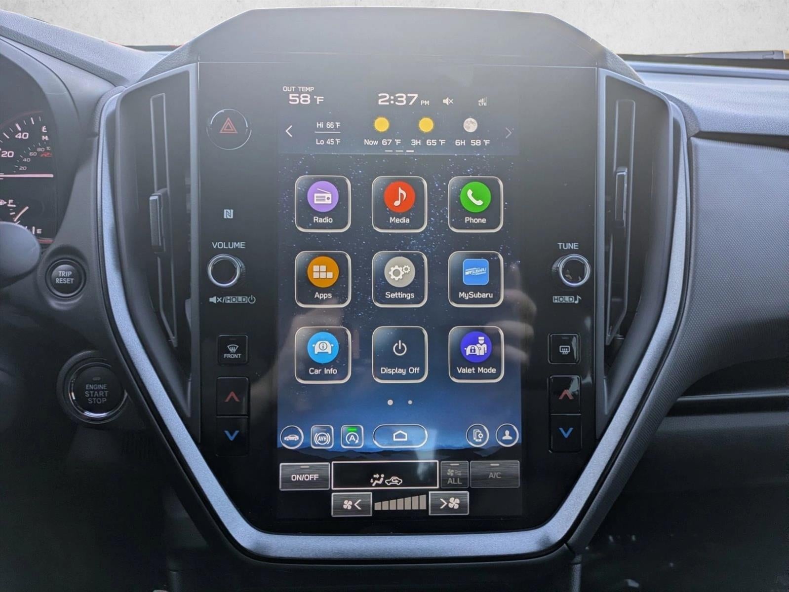 - Radio: Subaru STARLINK 11.6" Multimedia Plus Sys -inc: valet mode, AM/FM stereo, HD Radio, multi-touch gesture high resolution display screen, voice activated controls, Bluetooth® audio streaming and hands-free phone connectivity, Bluetooth® hands-free SMS text messaging connectivity, iPod control capability, rear-vision camera display, SiriusXM All Access radio (4 months free trial/subscription required after), SiriusXM Travel Link (4 months free trial/subscription required after), smartphone integration: Android Auto, Apple CarPlay, STARLINK cloud applications, 6 speakers, 3.5mm auxiliary input jack, illuminated/dual USB A and C input charge ports, roof mounted antenna and audio/satellite connected services